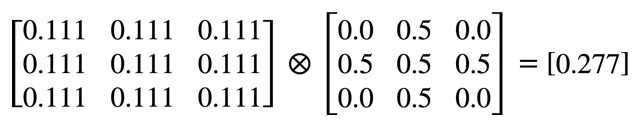 In the example below, the sum of the Kernel values is 1, and each Kernel value is equal to 1/9: