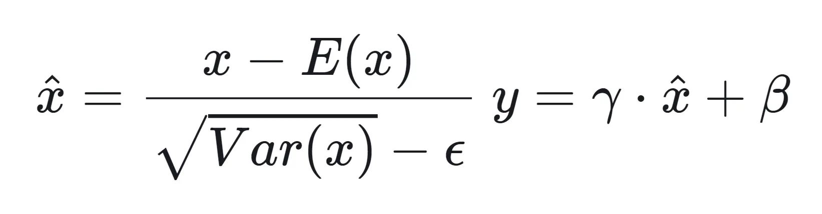 In this normalization technique, where the weights are scaled and shifted by the variance and the mean. Mathematically, it is given as: