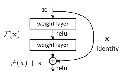 As a solution, the authors proposed residual blocks, an “identity shortcut connection” that skips one or more layers, as shown in the following figure: