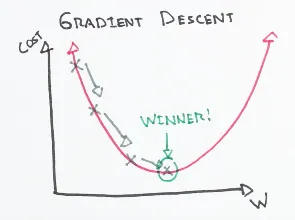 Steps 2 and 3 are repeated until the loss with the updated parameters actually stops decreasing. Of course, this fact alone does not guarantee that we found a global minimum; it could also be some local minimum. Various algorithms playing with the learning rate were developed to overcome this issue.