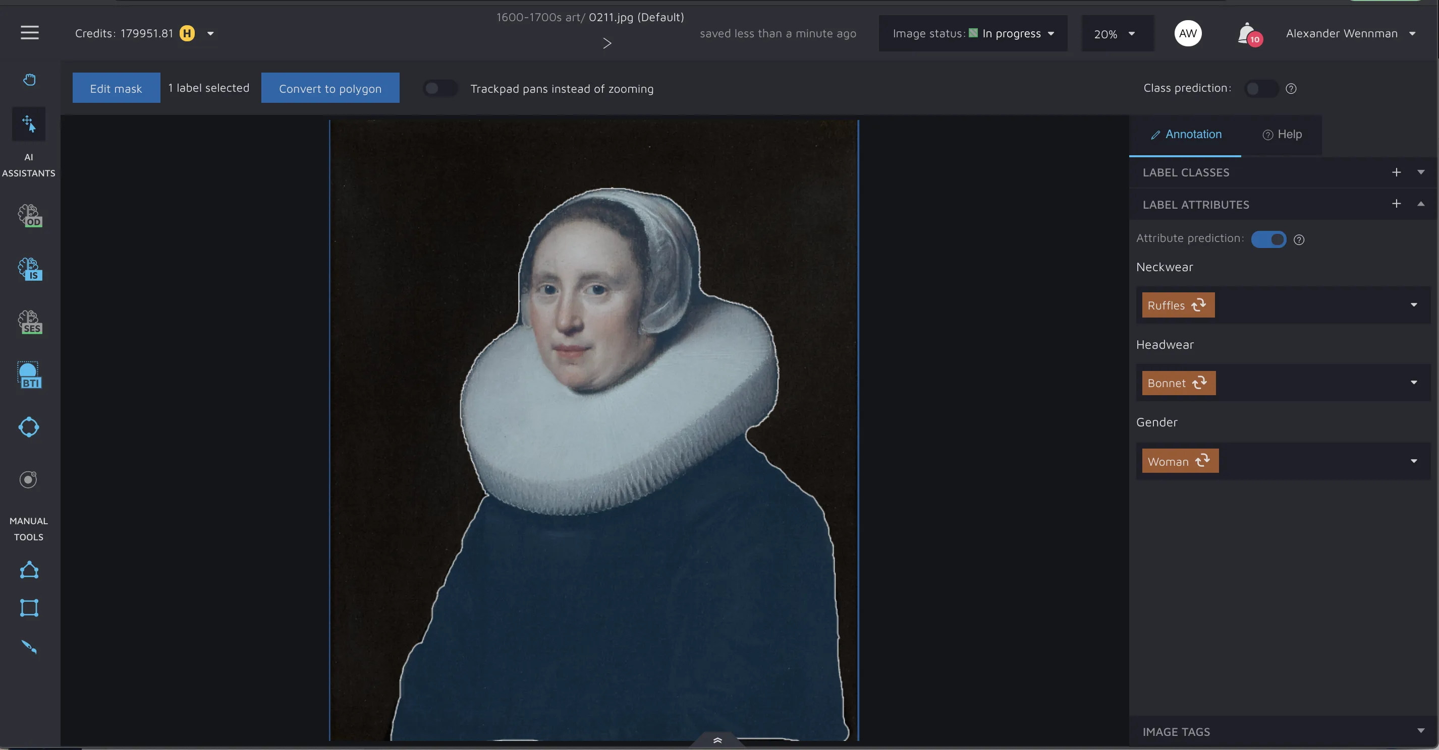 The Label Attribute Assistant is our offering to automate adding metadata to annotations. We do so by training an AI model based on the data you provide. This custom-tailored approach means that you get AI assistance that gets better over time, as you provide more and more data.