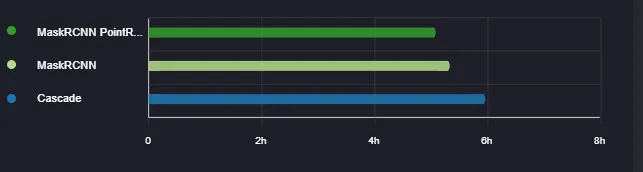 Here you can see the speed with which the models from different experiments make predictions on new data. The inference speed is measured in fps (frames-per-seconds).