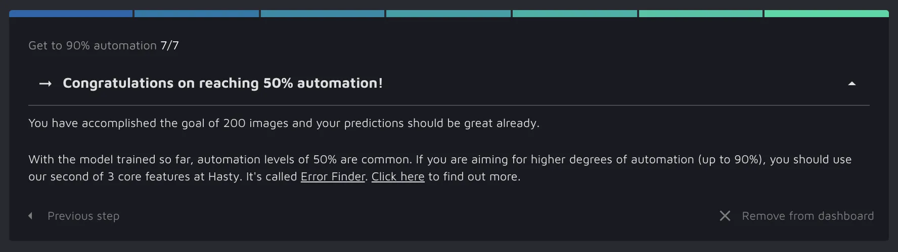 As of today, that is all in terms of the Dashboard. However, in Hasty, we aim to improve the tool and make the workflow smoother and more accessible. So, the Dashboard capabilities might expand over time as the tool develops.