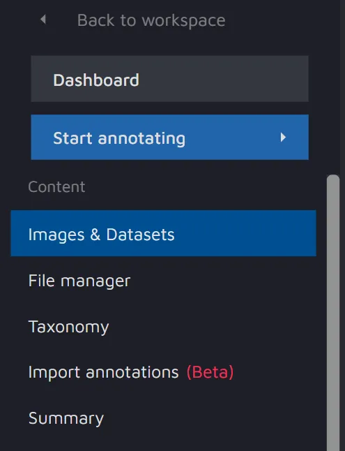 3. Go back to your project and click the Images & Datasets tab on the left menu.