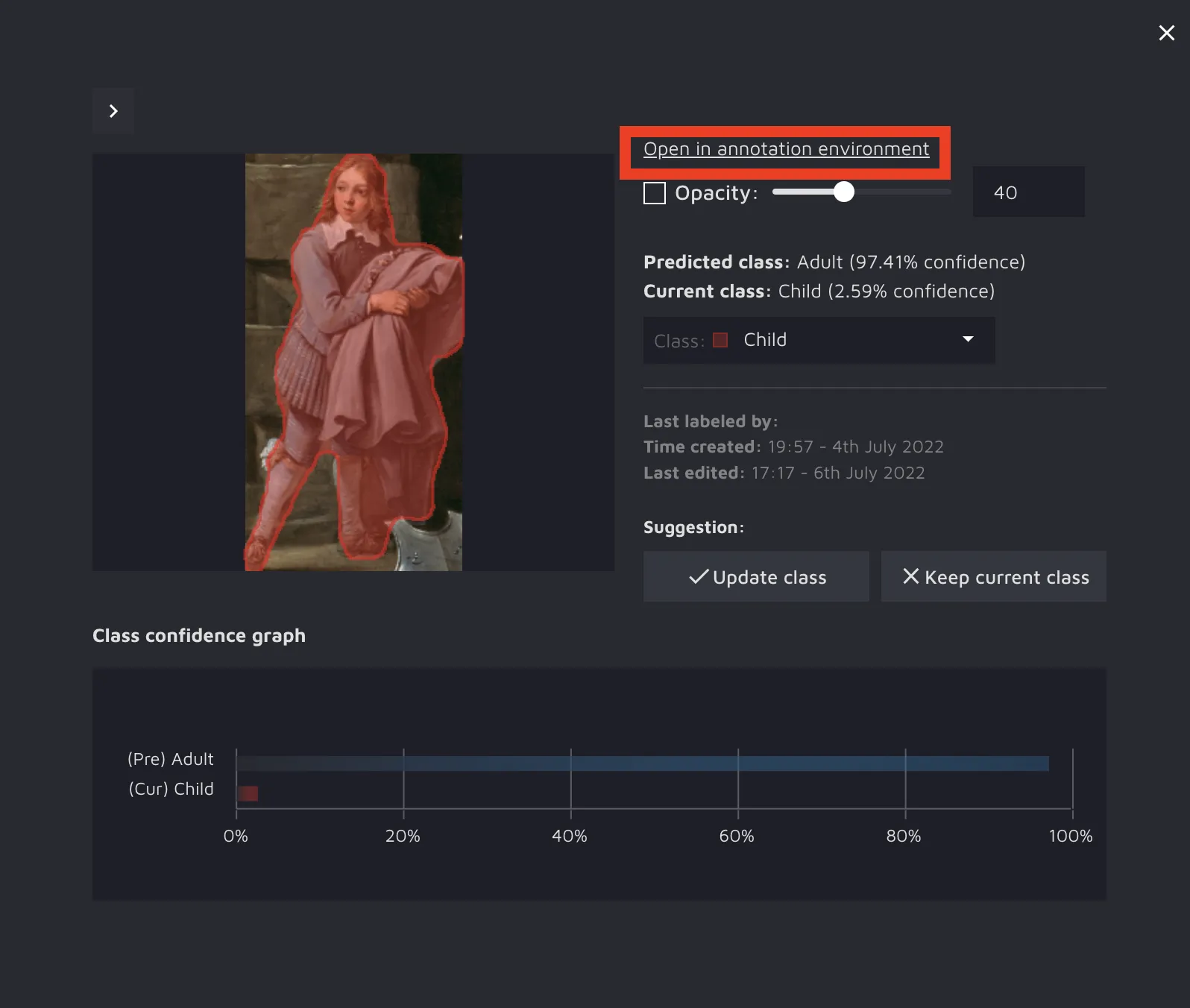 Select any suggestion and click on the “Open in annotation environment” button.