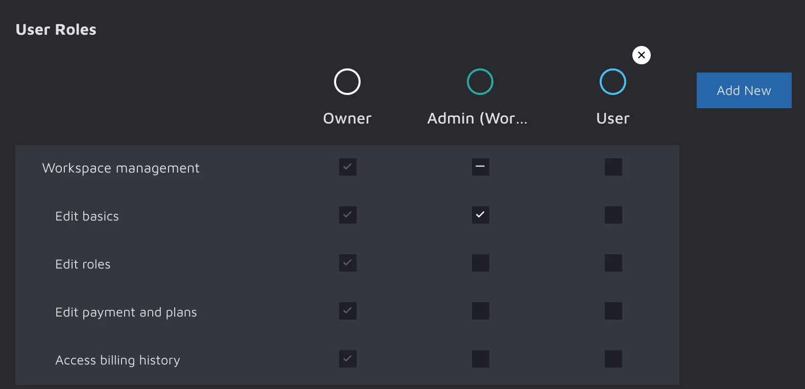 On this screen, you control access to your workspace as well as what those who have access to the workspace can do. It all works in a very similar way to how you set up access and permissions for individual projects, but access and permissions given here are much more powerful than those given for individual projects. That is because some permissions (more on which later) override specific project permissions - so even if you remove a user from "Project A" - that user can still have access to it if he/she has the right permissions in the workspace. Be mindful of that before inviting users.